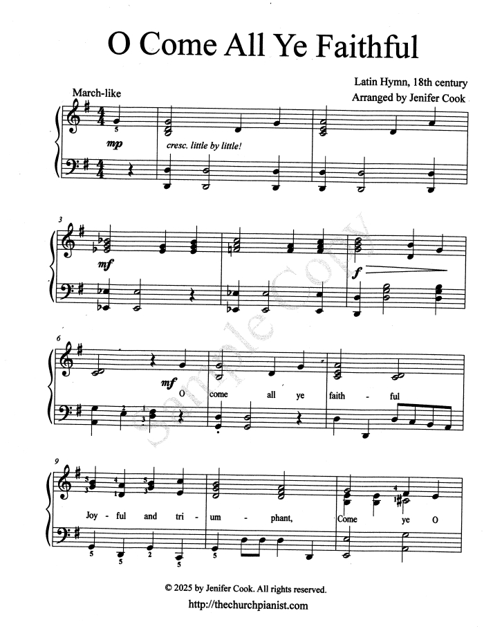 Early intermediate sacred piano solo, arranged by Jenifer Cook, 3 & 1/2 pgs. Written for the student in mind with ample fingering suggestions. Well-structured for easy learning. This piece does have a slight celtic flair. I wrote this for one of my former male piano students who LOVED hymns in minor keys. He's in college now but still considers this his all-time favorite.